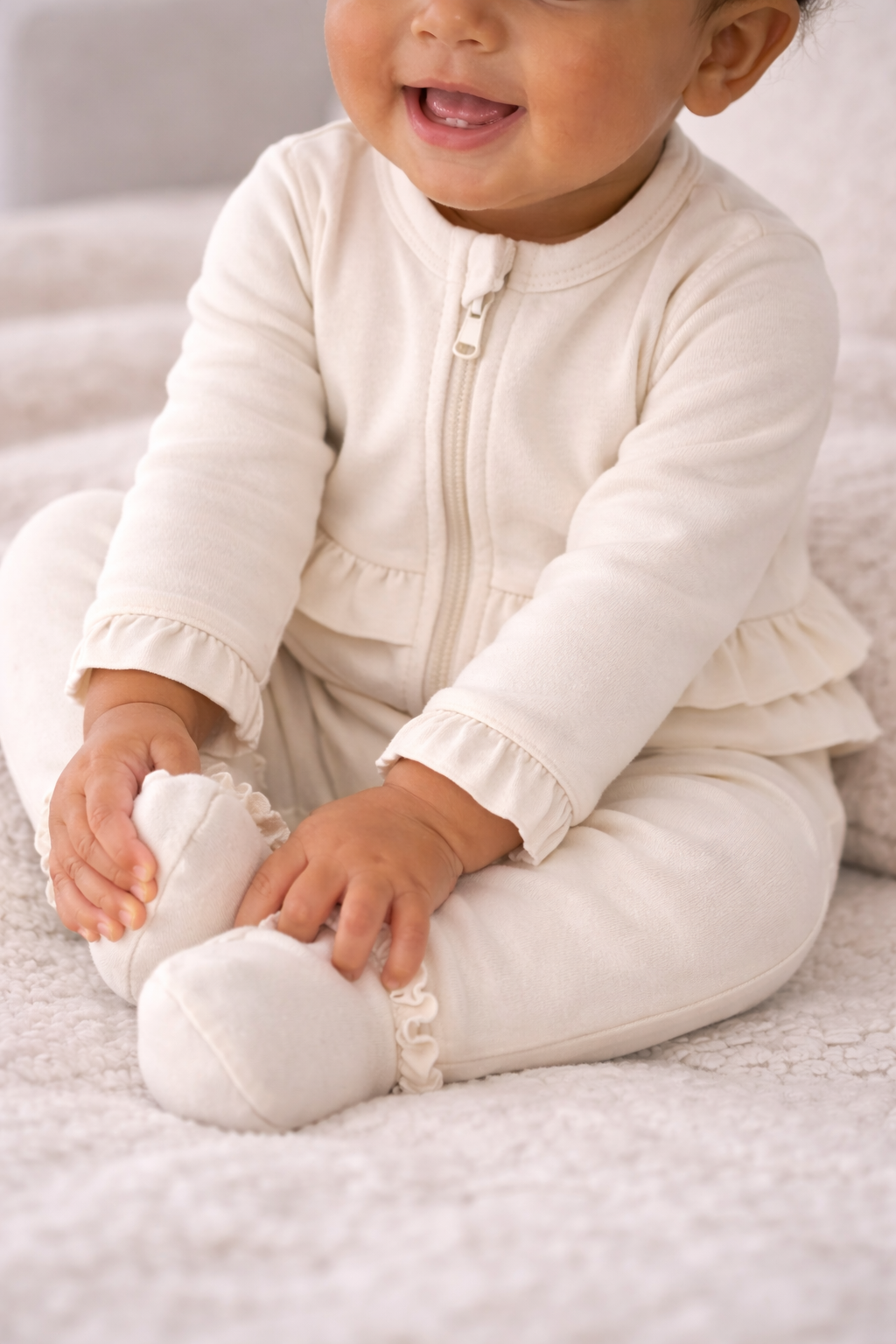 Our Signature Ruffle Onesie is made for sensitive skin, easy changes, and all-day comfort — so you can feel confident about what your baby wears, every day.